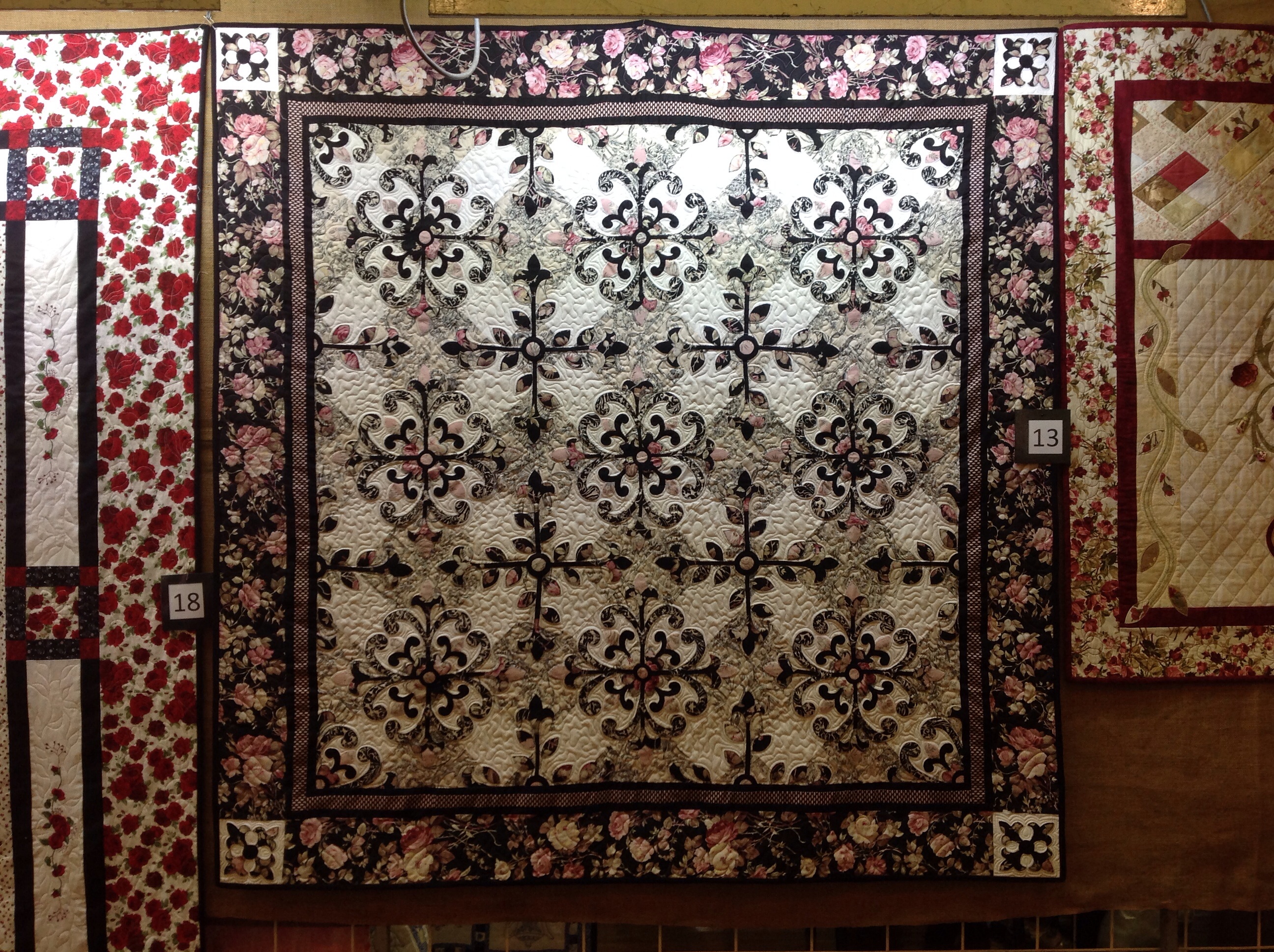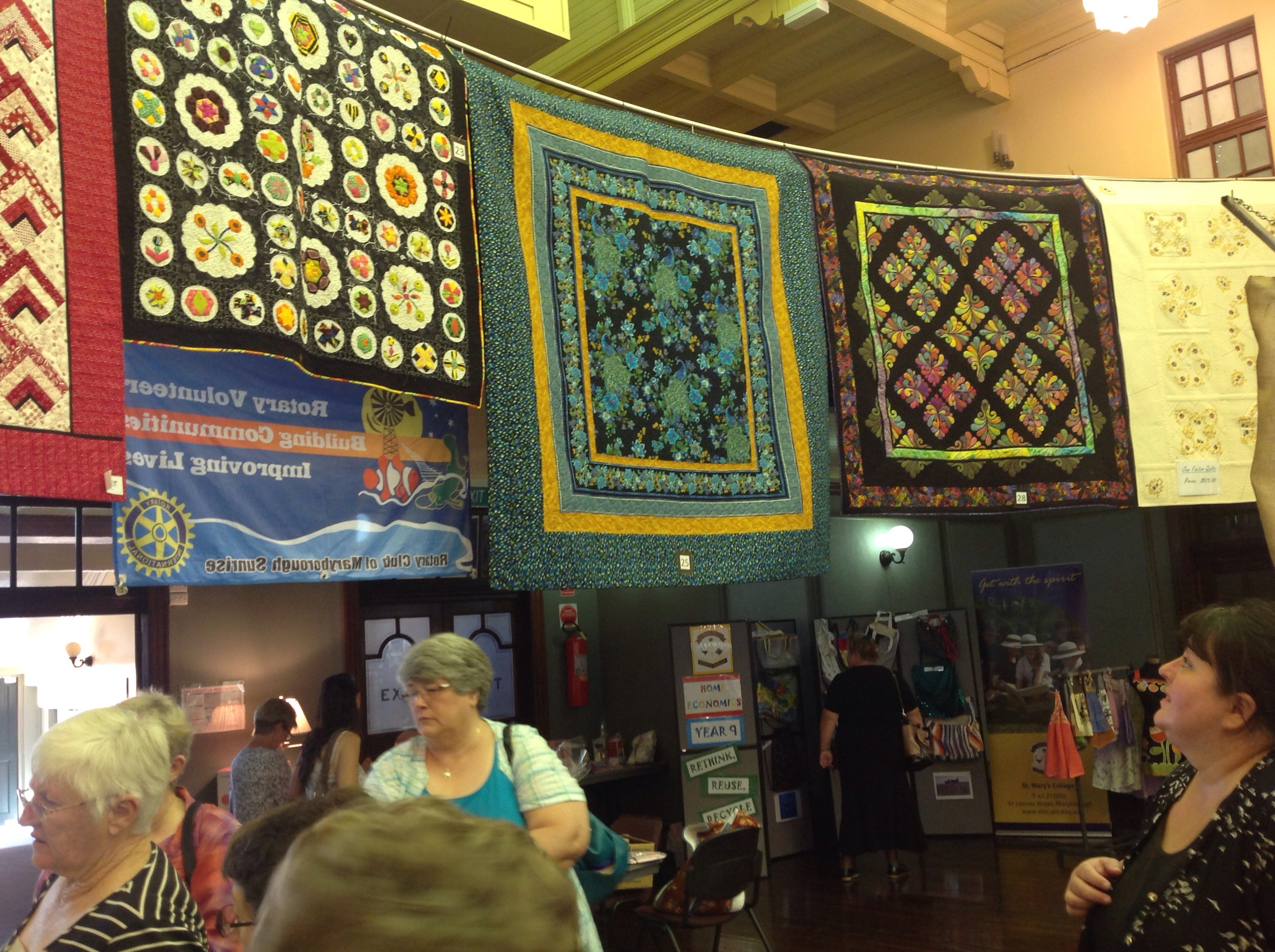 We hung our ‘Flowers for Trudy’ quilt and we have had a huge response to it. Everyone loves the bright colours and are quite disappointed when we tell them it isn’t a kit for sale. We have sold quite a few raffle tickets so we have raised more for the Blue Nurses which is great.