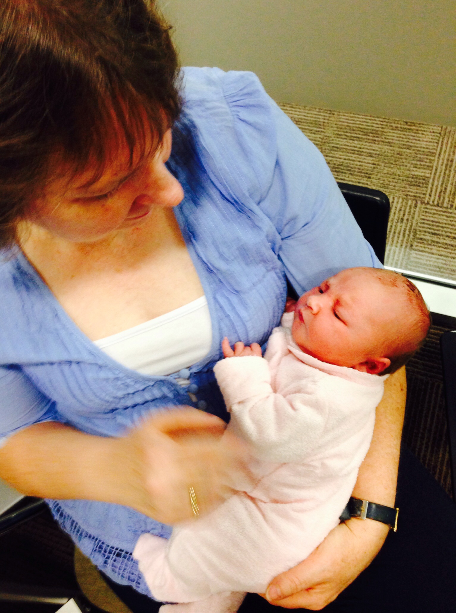Great excitement on Friday when I was at the quilt show in Brisbane – a new grand-daughter – clearly a good omen I’d say. Number 1 son and his fair maid welcomed their first child – Eleanor Margaret Kaye – 8lb – mother and baby doing well. Here’s a photo, the best available so far of Lady Eleanor and her adoring grandmother: