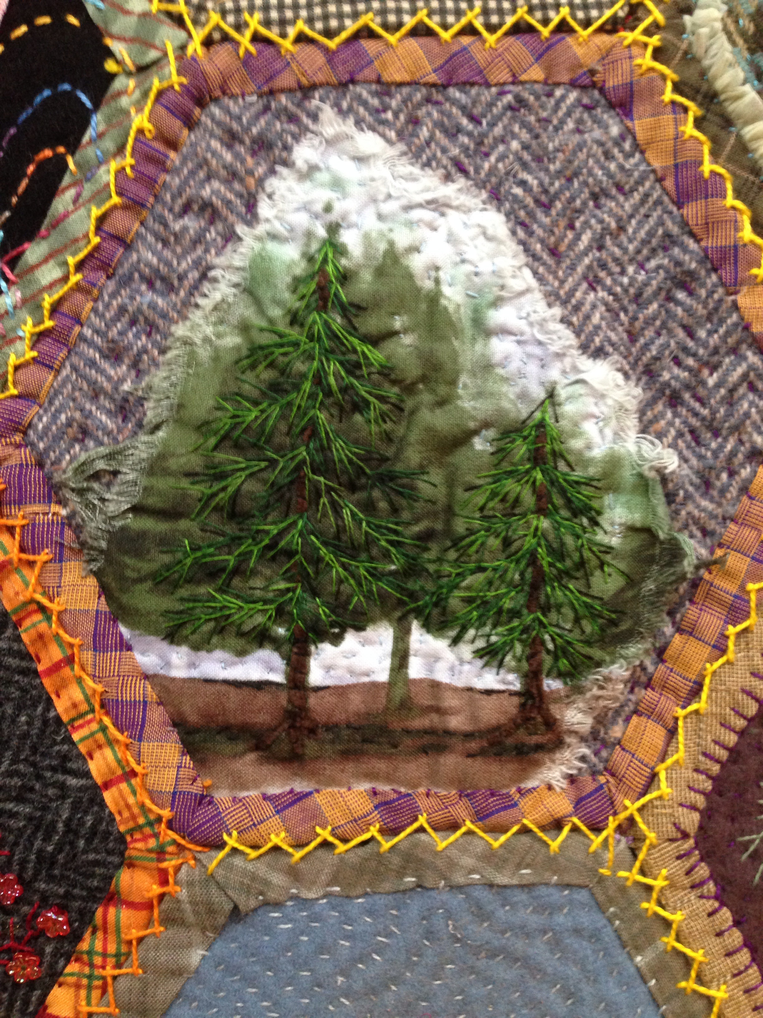 Now my Embroidery Guild ladies already knew this but embroidery is certainly making its presence felt in the quilting world. While it was almost unheard of in Europe and America for quite some years it is now quite common to see some embroidery incorporated into a quilt. I also showed you Segolaine Schweitzer’s work yesterday. Here it is again.