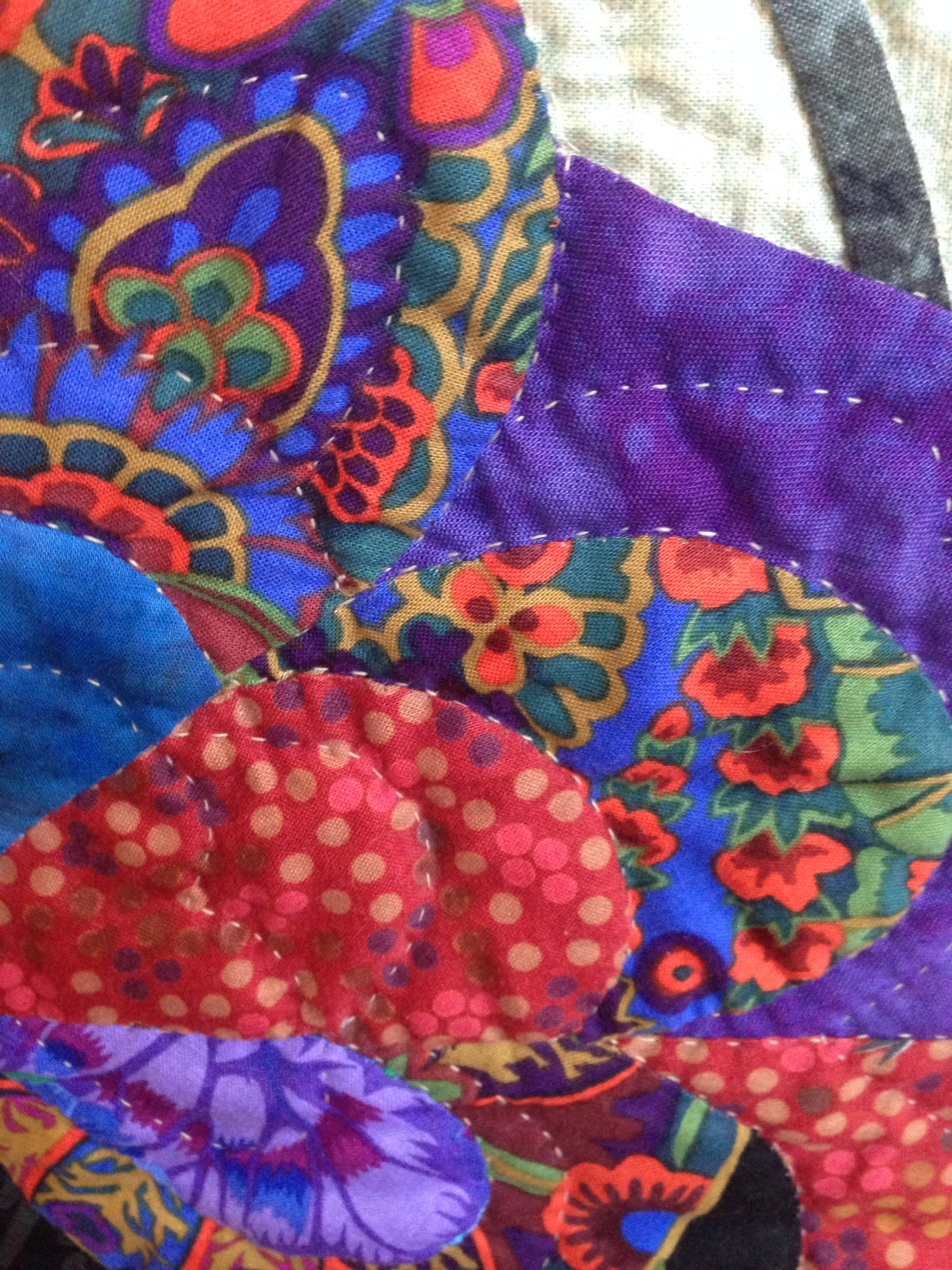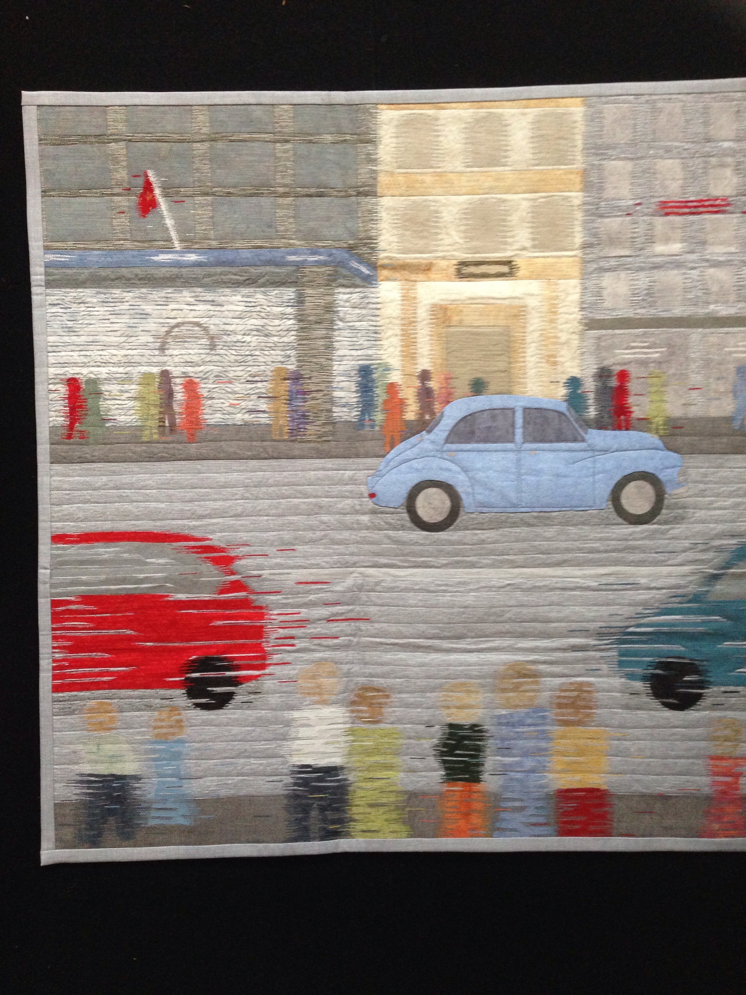 A frequent visitor to Apatchy Quilting, Lisa Walton was on duty at the show and in fact had to step in to cover Lenore Crawford’s classes when the latter was unable to attend due to illness. Quite big shoes to fill but I’m sure Lisa managed. We were discussing another class at Apatchy and she suggested her ‘Fusion’ class. It involves improvisational piecing and proved very popular at AQC with the classes being booked out in two hours. Way to go Lisa.