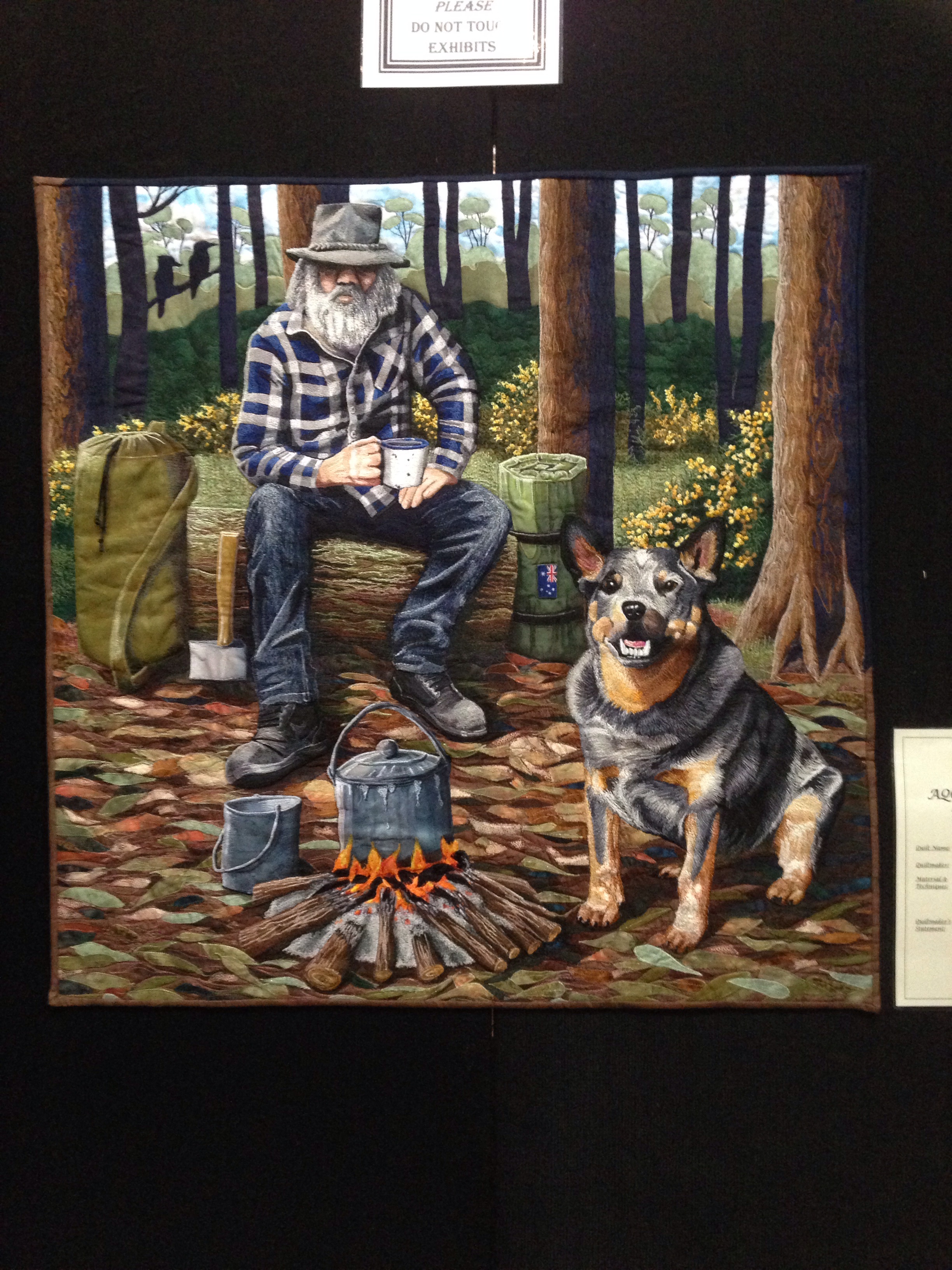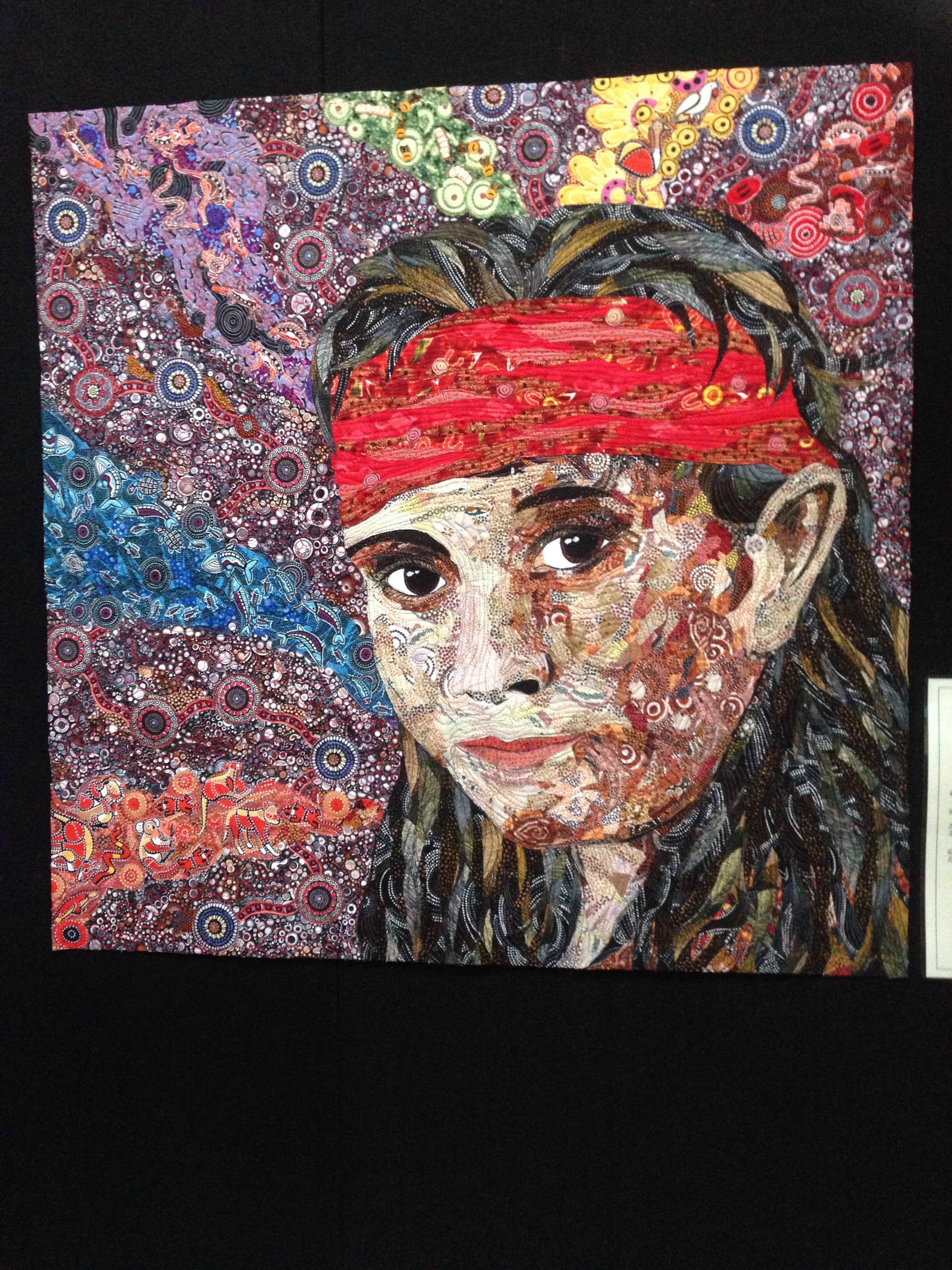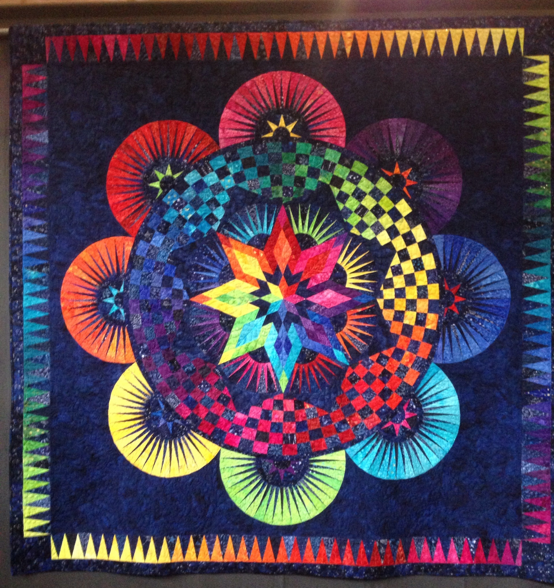 Next up we had a laugh with Deb Layt. Deb has just published a book on her original technique she calls ‘Geoweb’. If her quilt ‘Fire and Ice’ is anything to go by this will inspire many people to read how she achieves such wonderful results.
