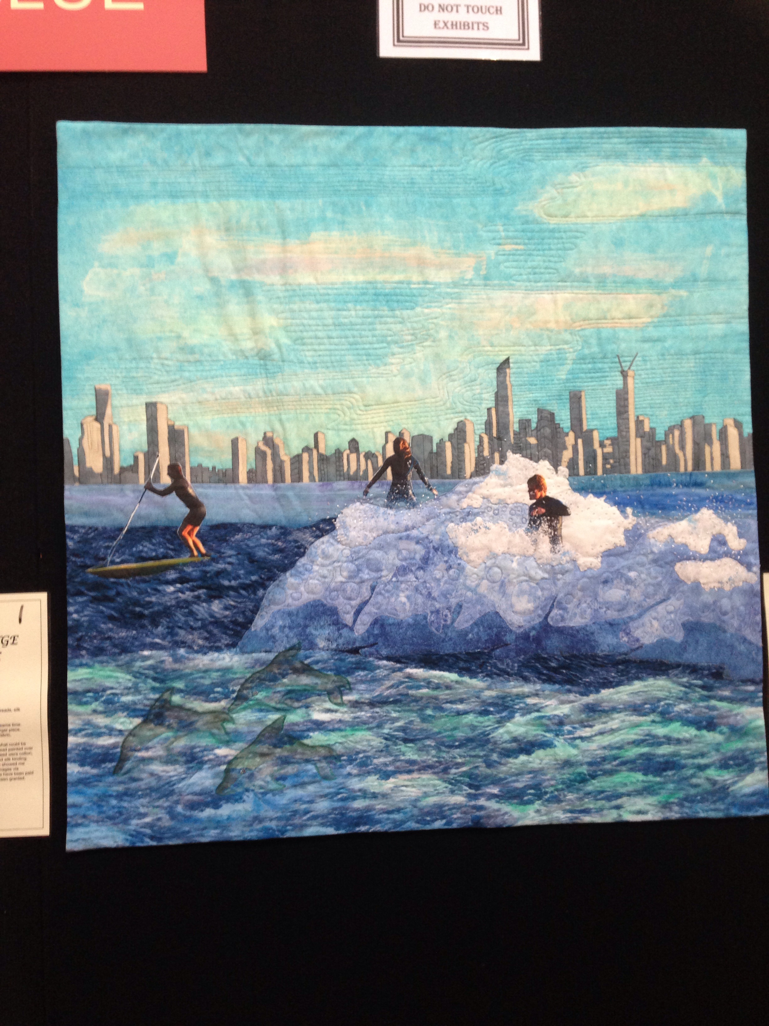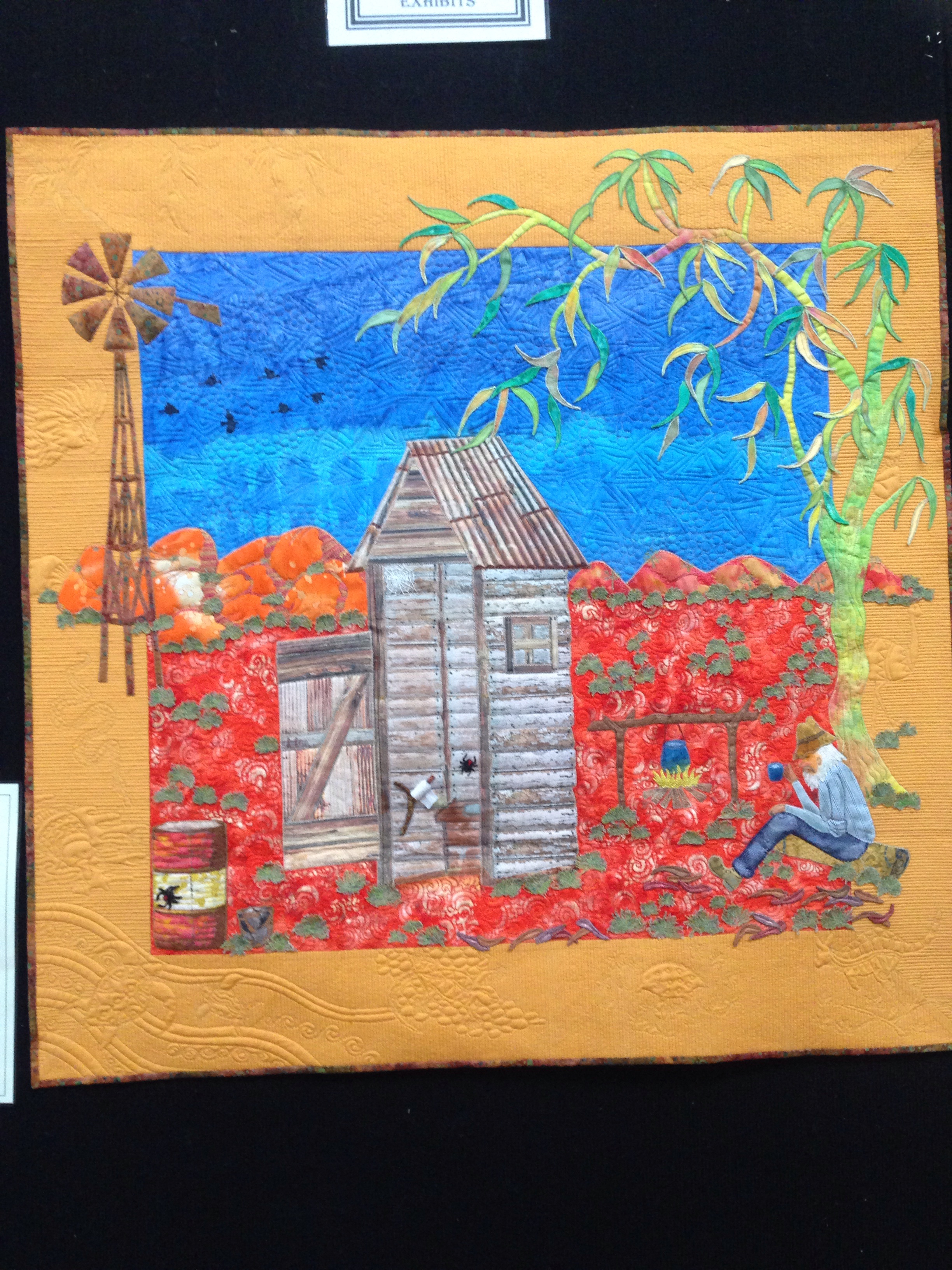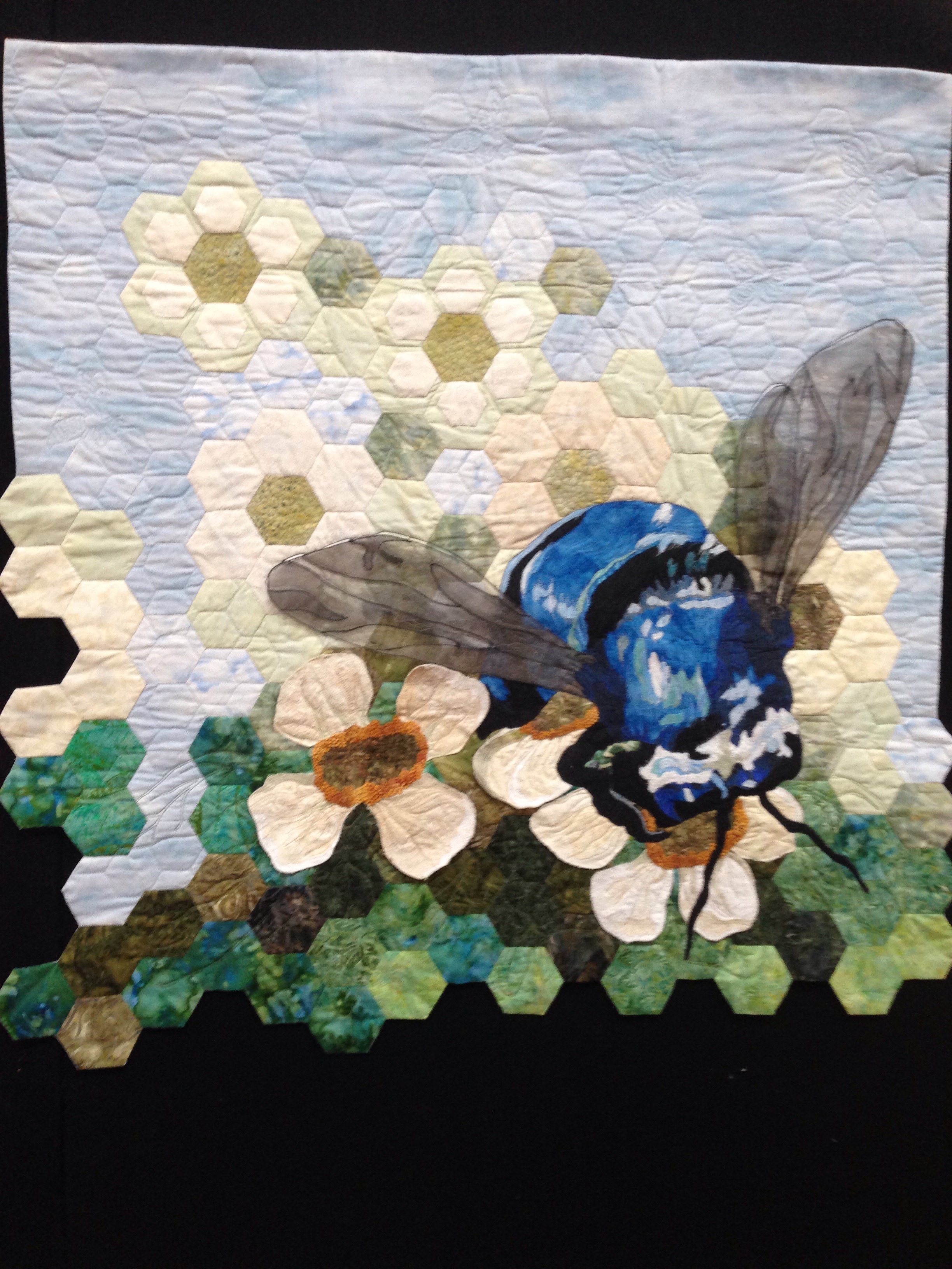 Next up we had a laugh with Deb Layt. Deb has just published a book on her original technique she calls ‘Geoweb’. If her quilt ‘Fire and Ice’ is anything to go by this will inspire many people to read how she achieves such wonderful results.