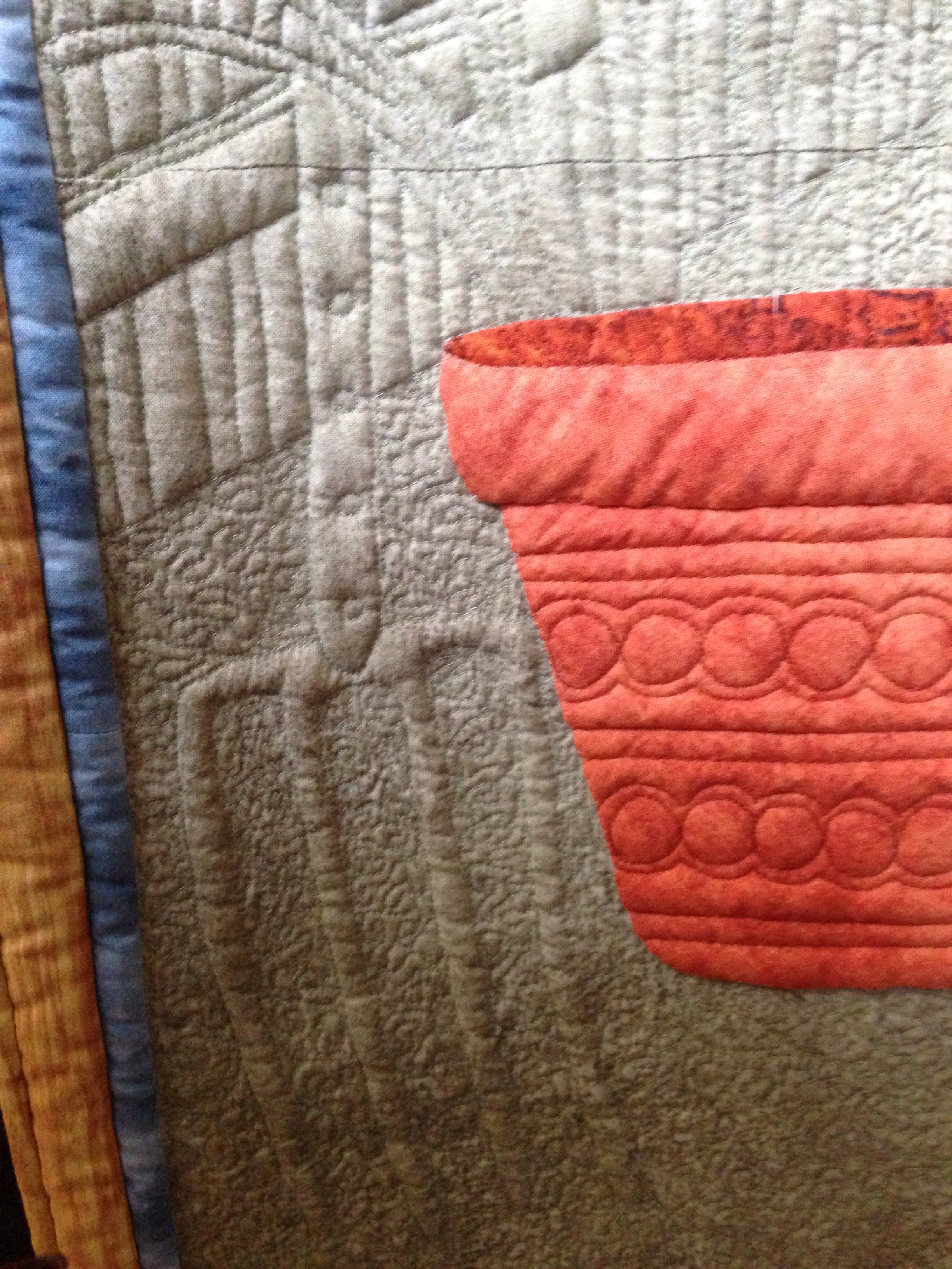 Speaking of demos, the amazingly talented Helen Godden was showing everyone how to use the Sweet 16 machine to couch wool. Have you ever heard of a couched wool quilt? Helen said she thinks it is the first one in the world and I wasn’t about to disagree. Here’s the quilt
