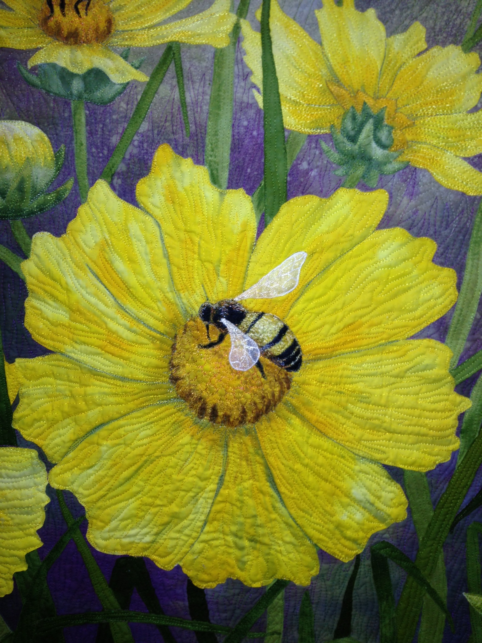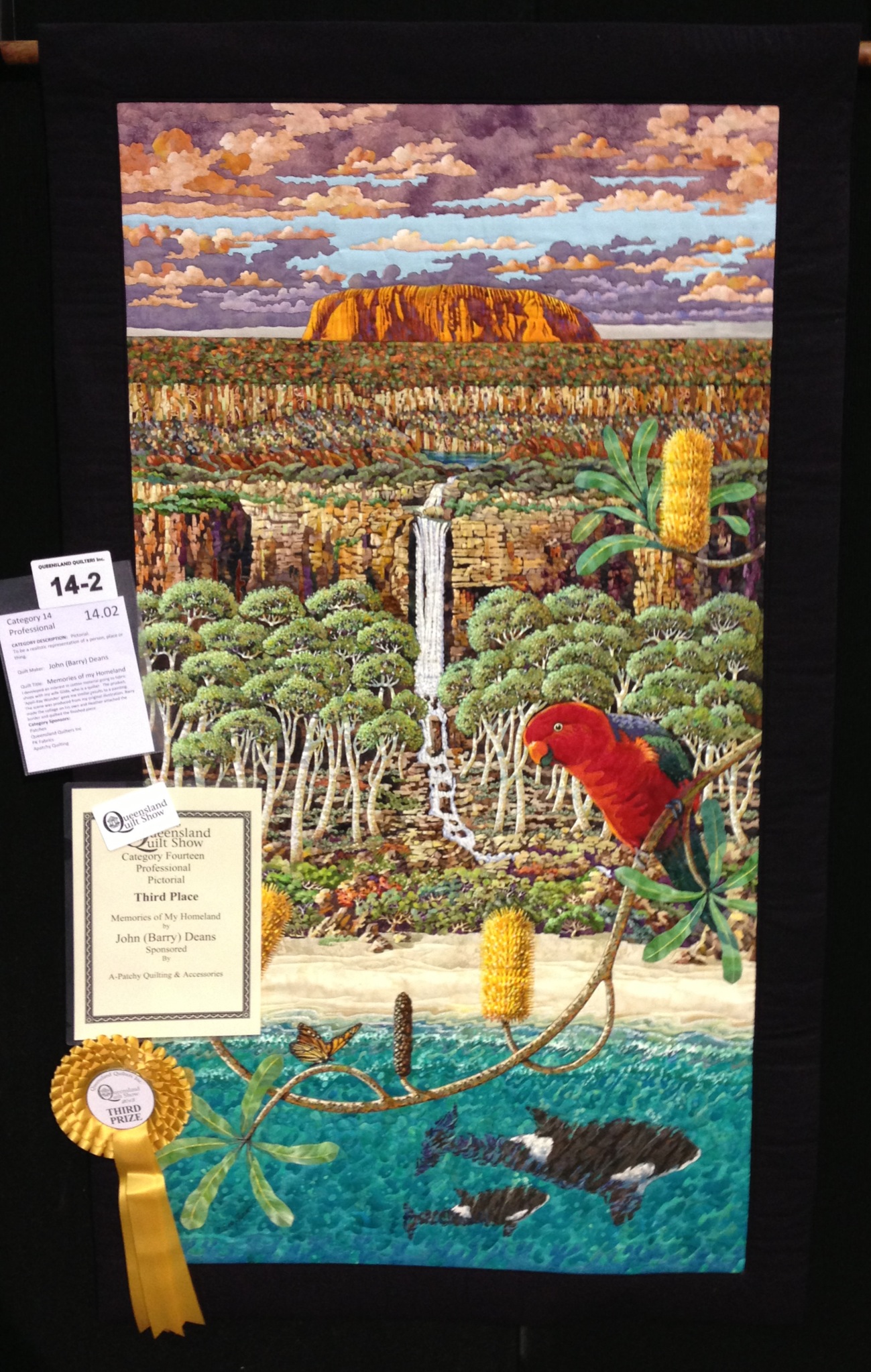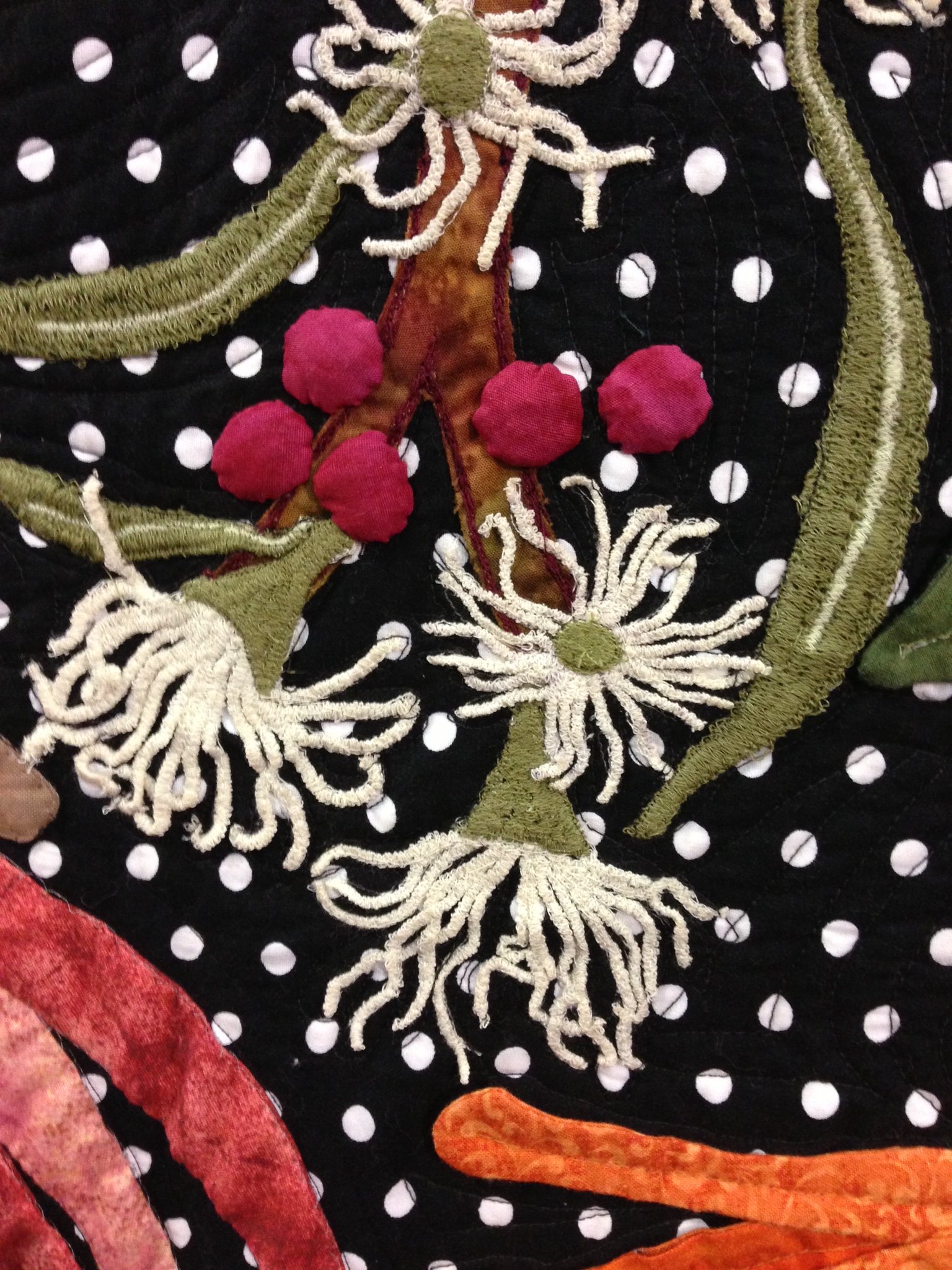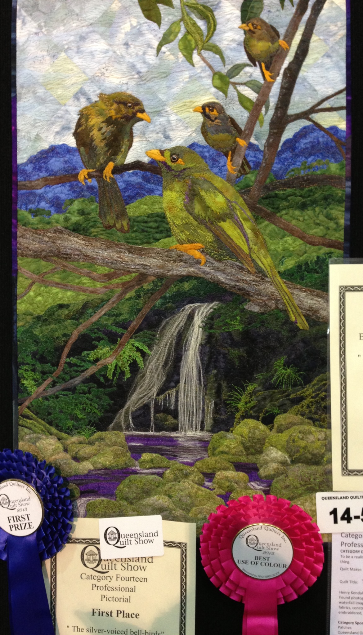 It’s been an interesting time at Apatchy with classes as well as visitors. Last year we started the ‘Campfire Sessions’ where one of you clever ladies show the rest of us a glimpse into your expertise. A couple of weeks ago the talented Lynette showed some of the group how to go about free motion quilting. Her patience and simple explanations made it fun and there were at least two new converts by the end of the class. Here she is showing Margaret a thing or two while Sharyn gets going on her piece.
